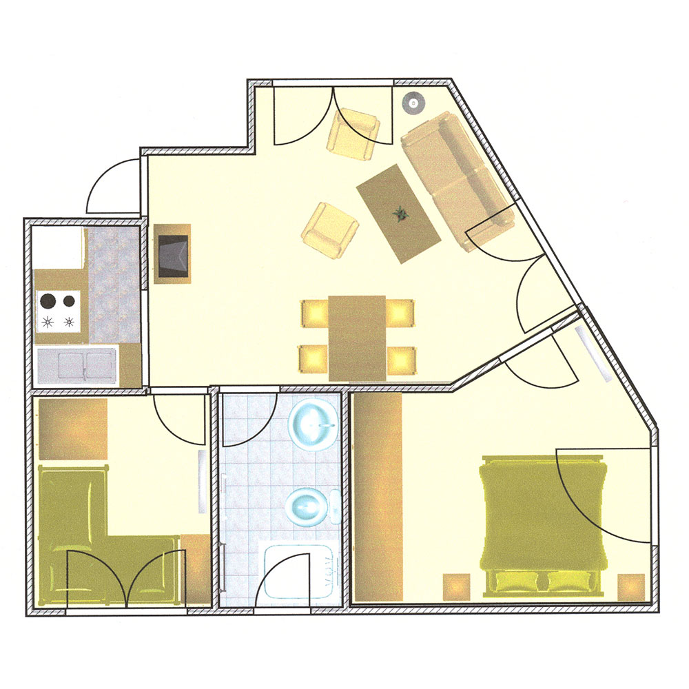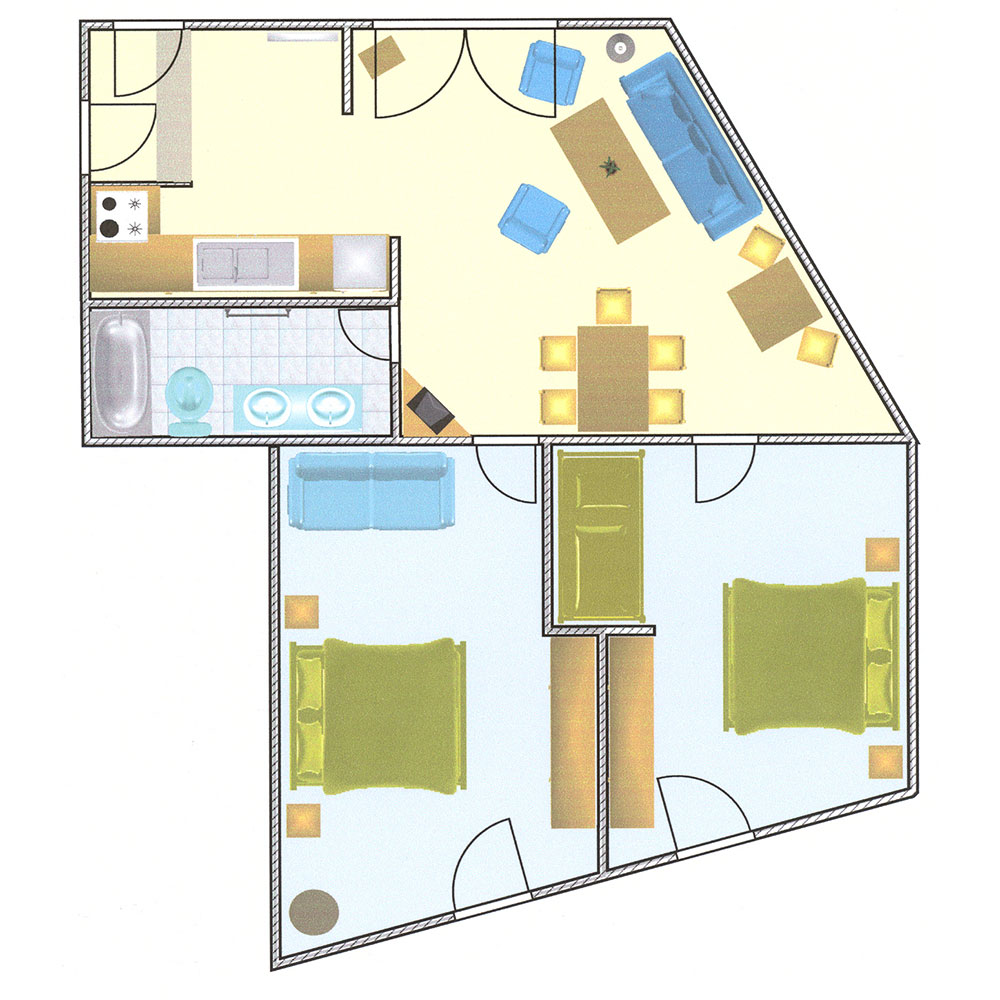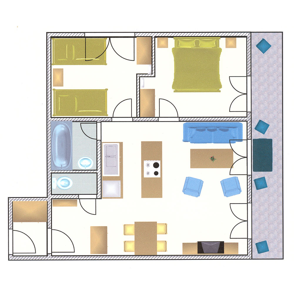 BalkonTyp A„Seeblick Suite“# 103 / 203 = 4 Betten# 104 / 204 = 5 Betten |