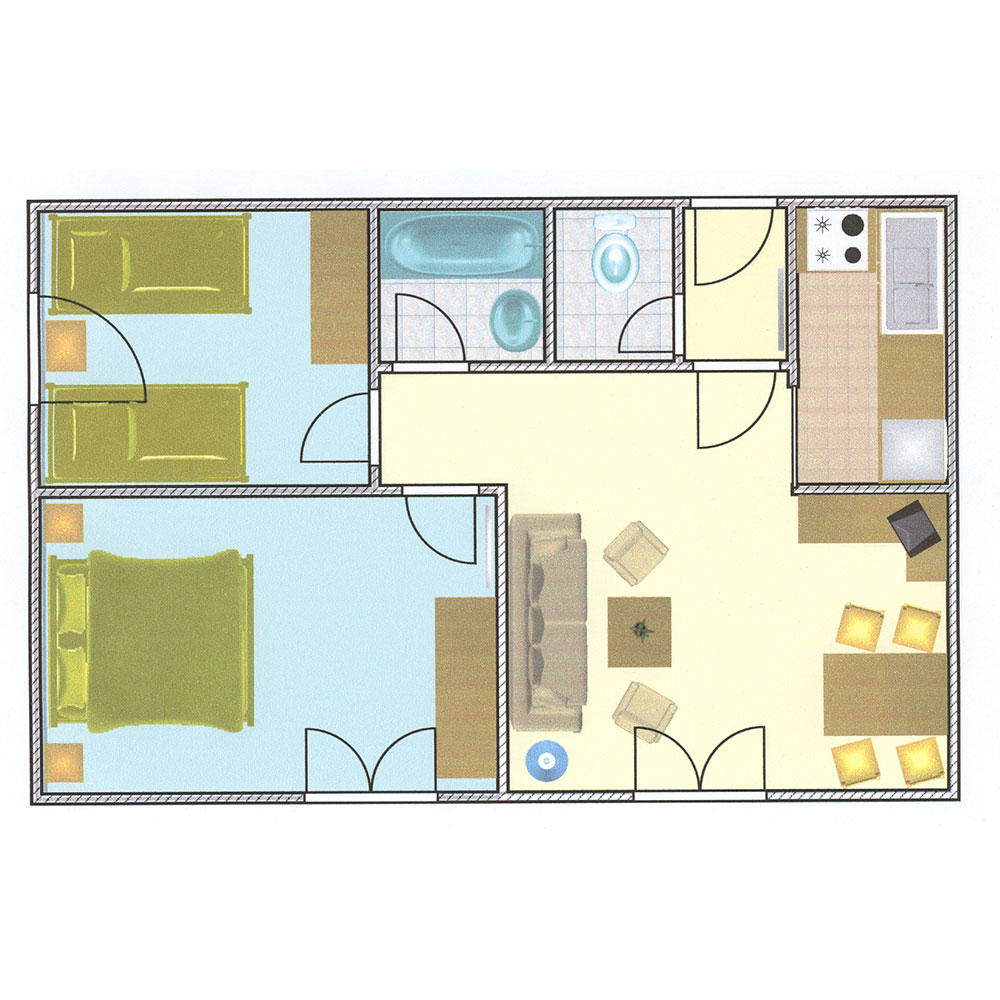 Typ E„Bergheimat“# 2062 Doppelbetten, 1 Stockbett, 1 Einzelbett |