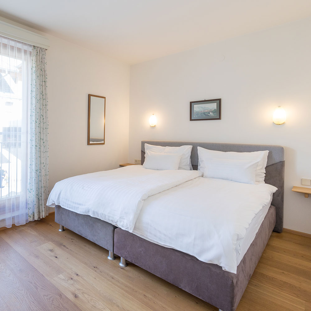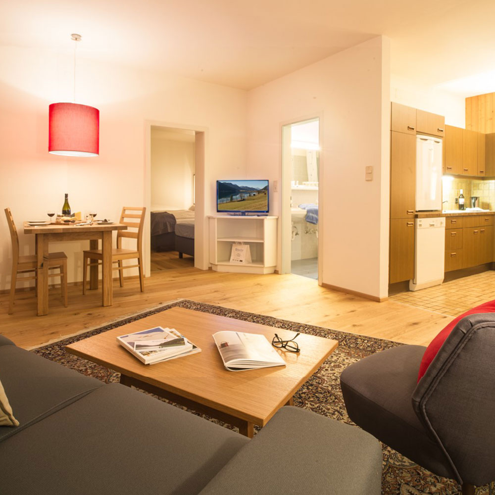 Our spacious apartments with a large balcony and lake view.